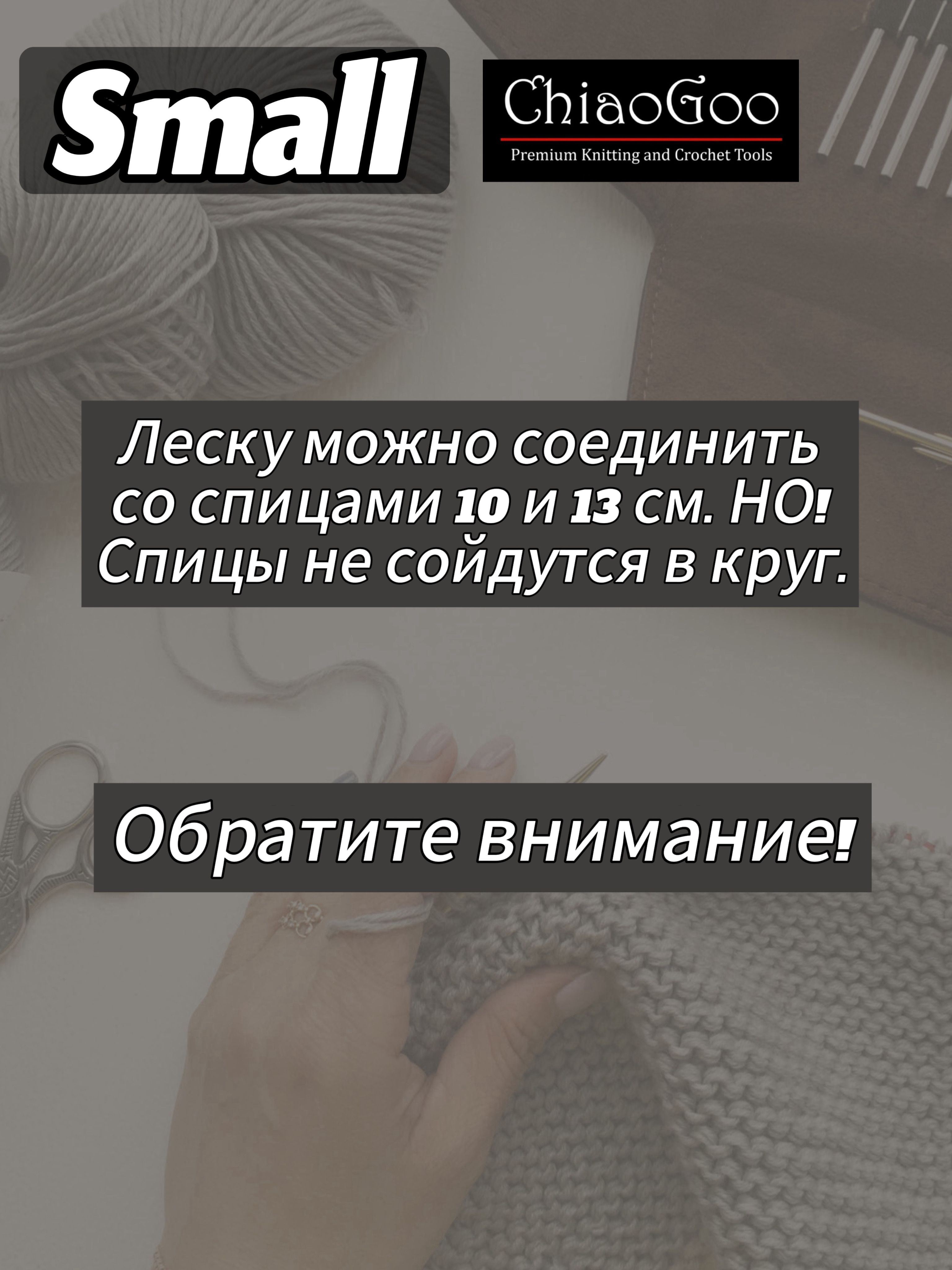 Самые миниатюрные лески из всей линейки ChiaoGoo. Стальной тросик в нейлоновой оплётке гарантирует надёжность и легкое скольжение. Ими можно нарастить недостающую длину, а также удобно использовать для вывязывания носков и рукавов, вместо magic-loop или классических чулочных спиц. Необходимо лишь добавить наконечники нужной длины и получить 3 спицы с гибким центром, которые невероятно удобны для скоростного вязания самых мелких деталей, закрытия макушек шапки. Голубая леска немного тоньше красной, благодаря чему более гибкая. Не имеет эффекта памяти, быстро принимает исходную форму. Совместимы со спицами ChiaoGoo размера S (2,75–5 мм). В комплект входит: - 3 лески 5 см, - 2 соединительных ключика.
