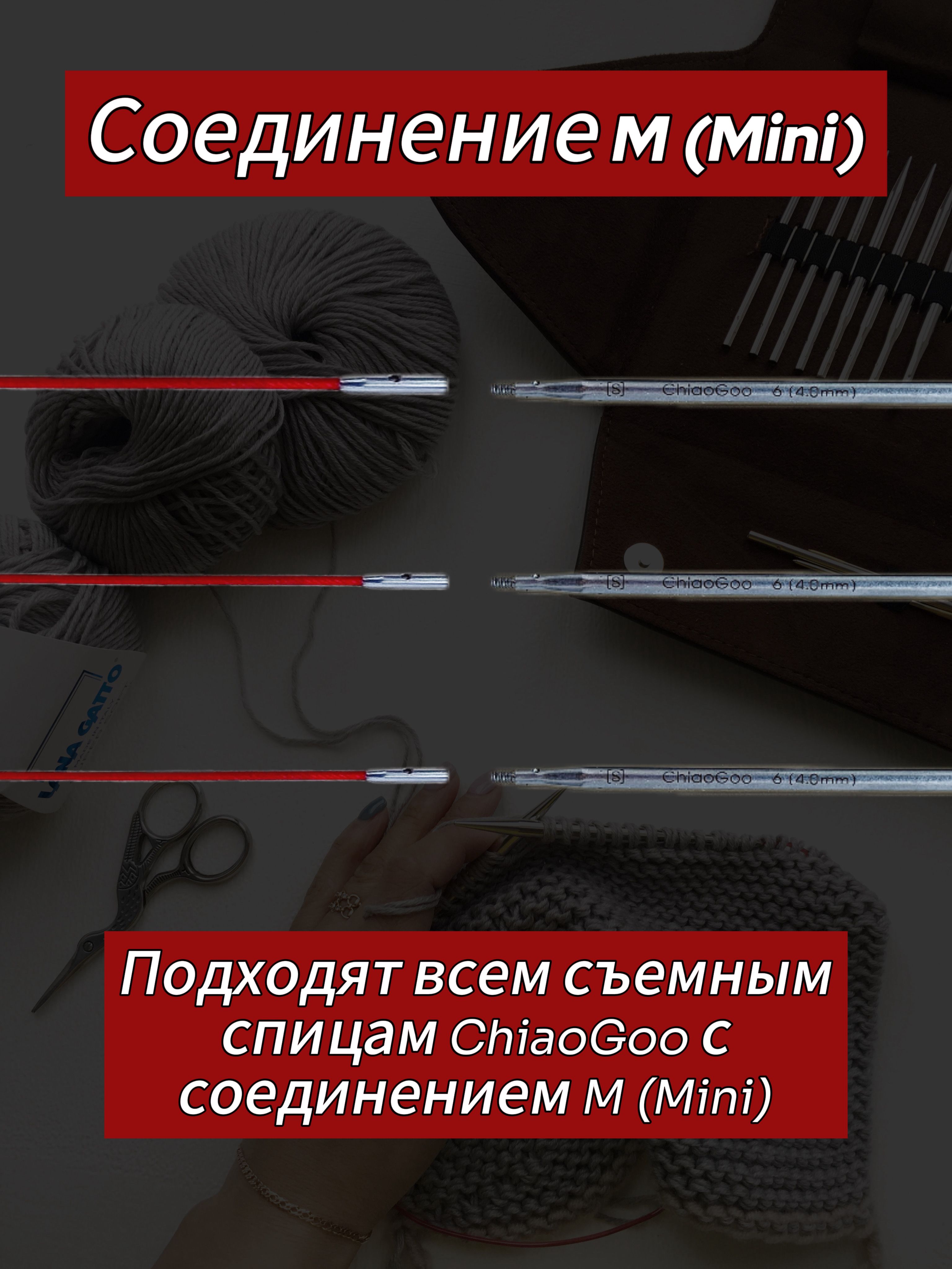 Самые миниатюрные и самые тонкие лески из всей линейки ChiaoGoo. Стальной тросик в нейлоновой оплётке гарантирует надёжность и легкое скольжение. Ими можно нарастить недостающую длину, а также удобно использовать для вывязывания носков и рукавов, вместо magic-loop или классических чулочных спиц. Необходимо лишь добавить наконечники нужной длины и получить 3 спицы с гибким центром, которые невероятно удобны для скоростного вязания самых мелких деталей, закрытия макушек шапки. Леска не имеет эффекта памяти, быстро принимает исходную форму. Совместимы со спицами ChiaoGoo размера M (1,5–2,5 мм). Внимание: все инструменты и аксессуары самого тонкого размера M требуют бережного обращения и хранения. В комплект входит: - 3 лески 5 см, - 2 соединительных ключика.