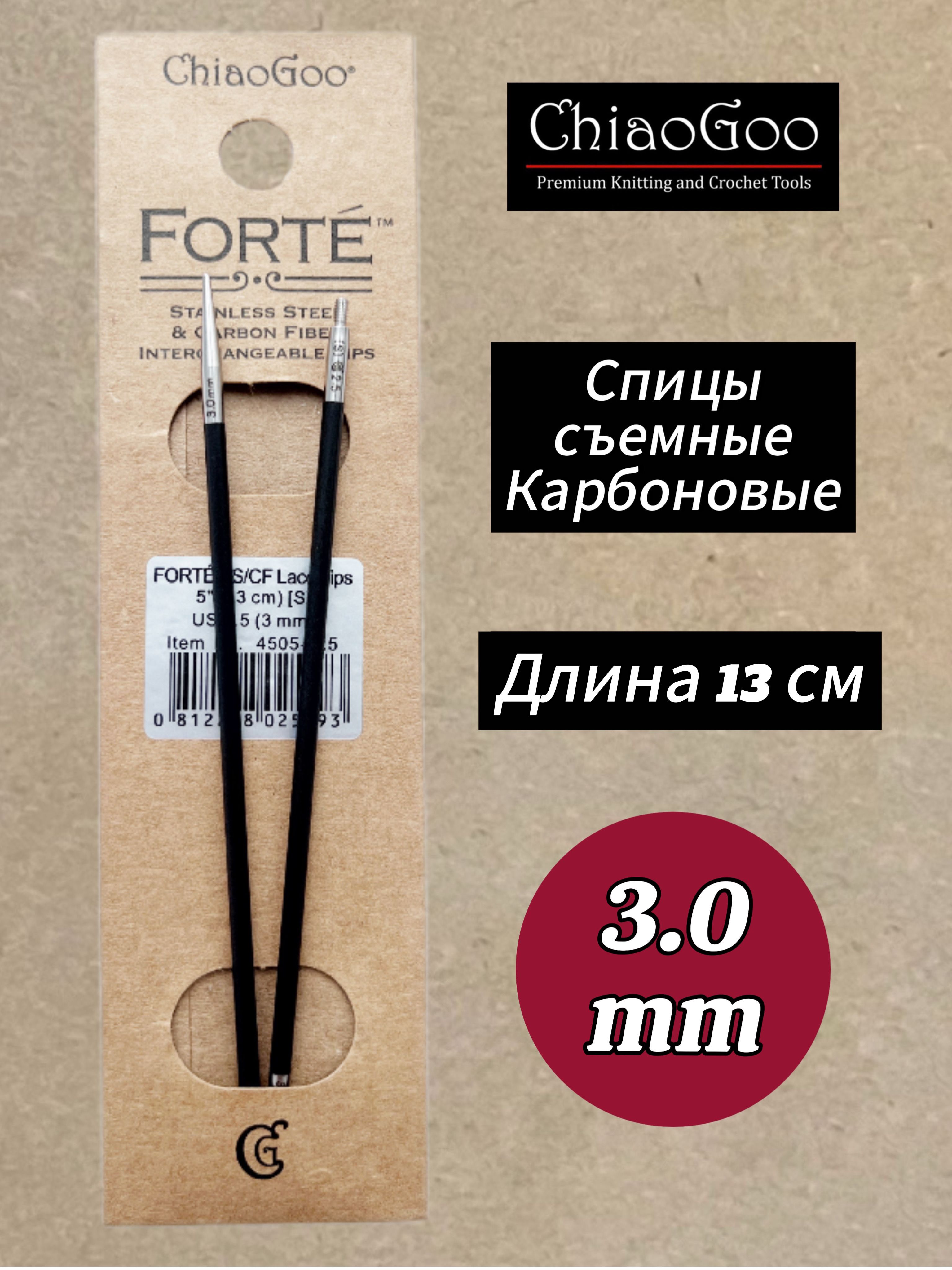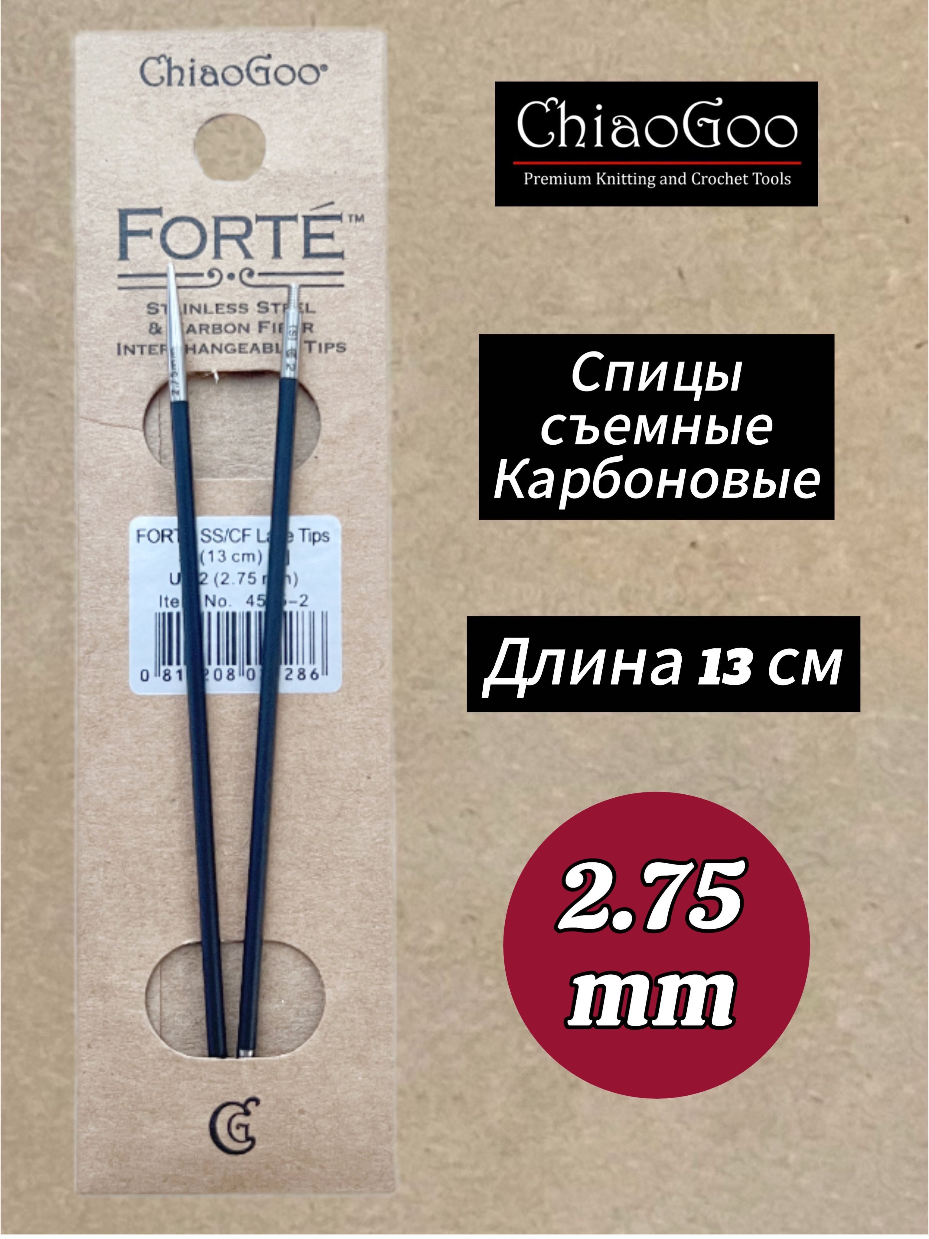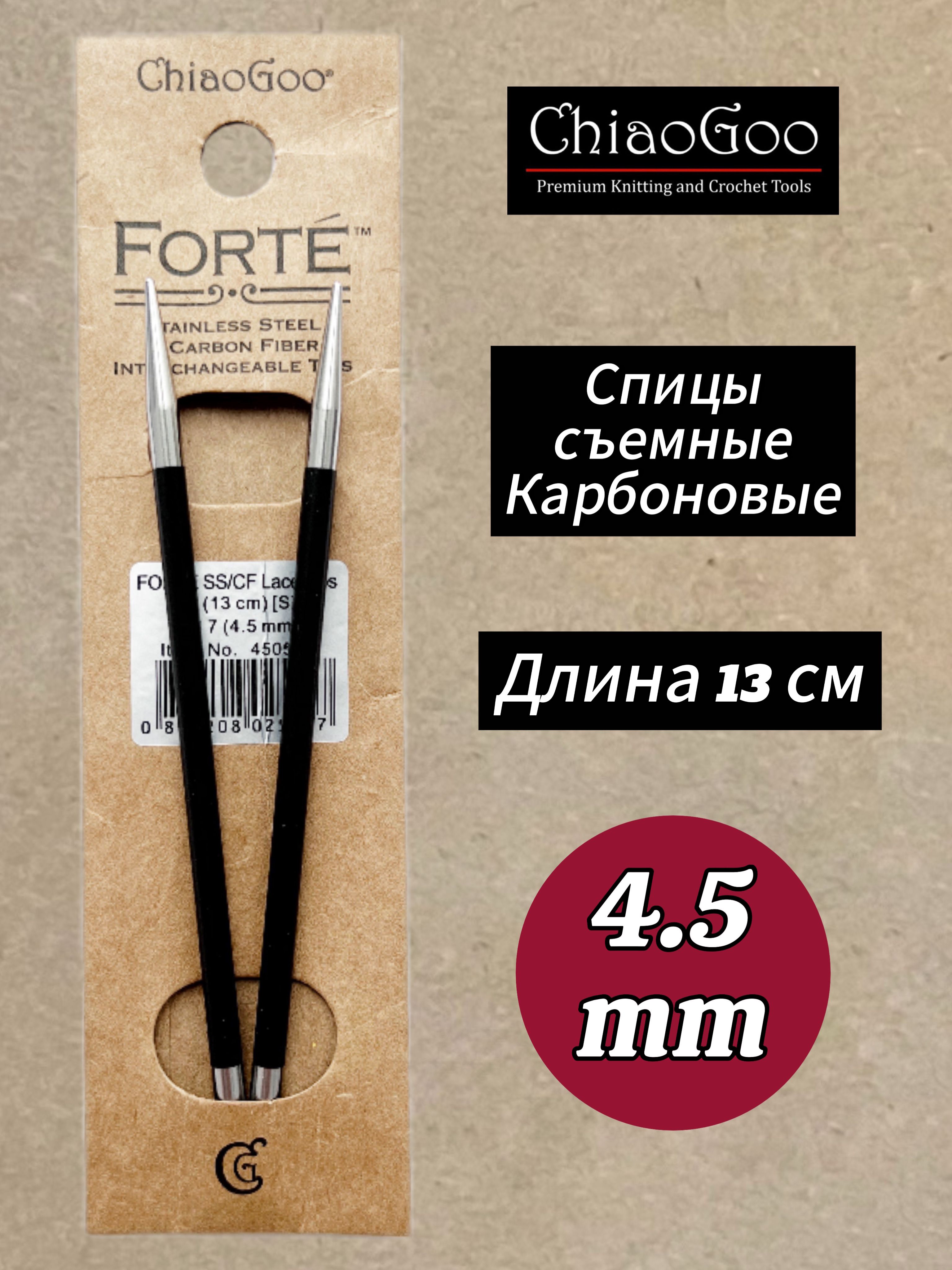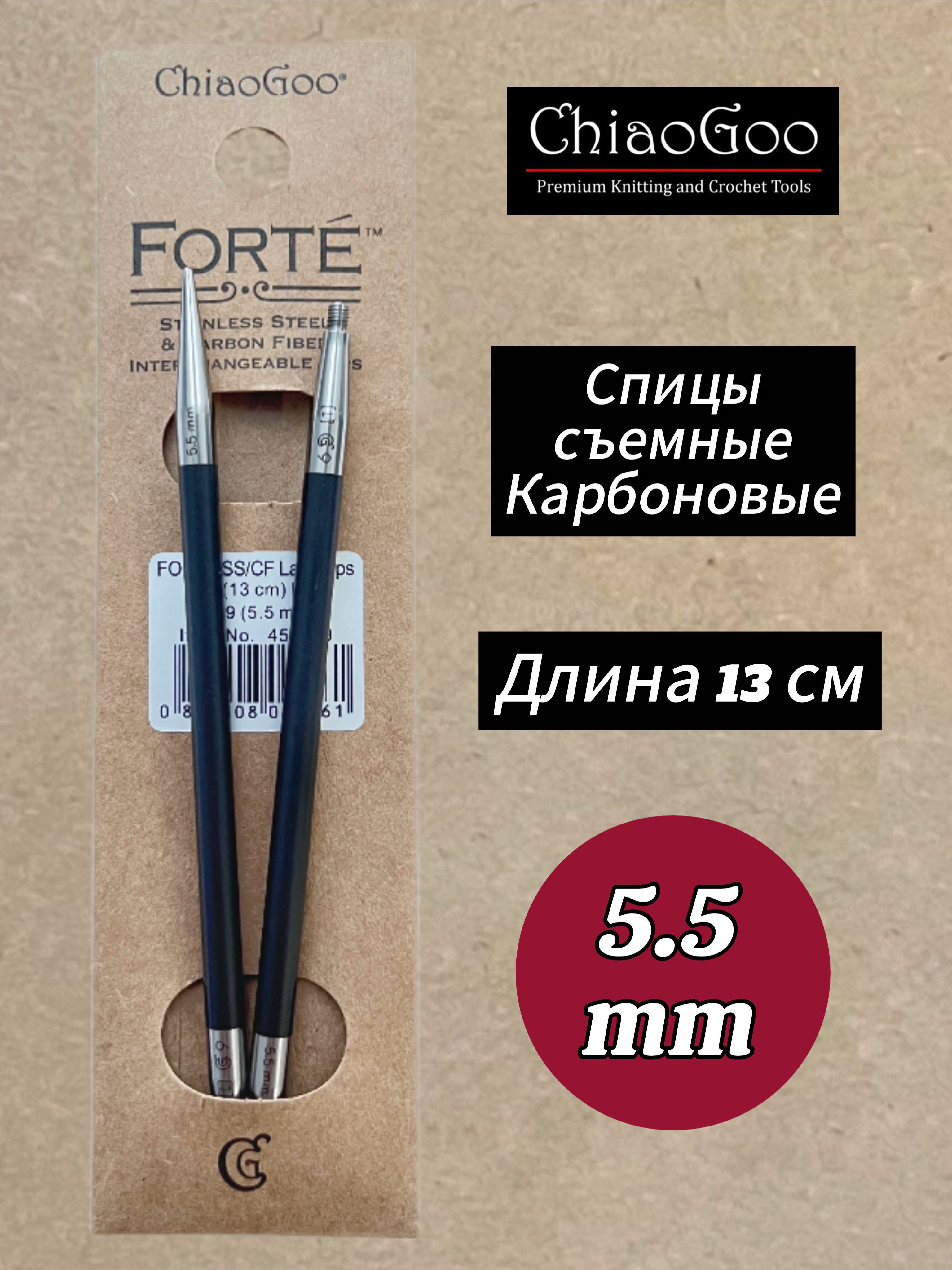 Спицы съемные Forte от бренда Chiagoo - это идеальный инструмент для тех, кто любит рукоделие и вязание. Они изготовлены из карбона, что делает их прочными и долговечными. Также имеют стандартную длину, что позволяет легко использовать их при вязании различных изделий.
